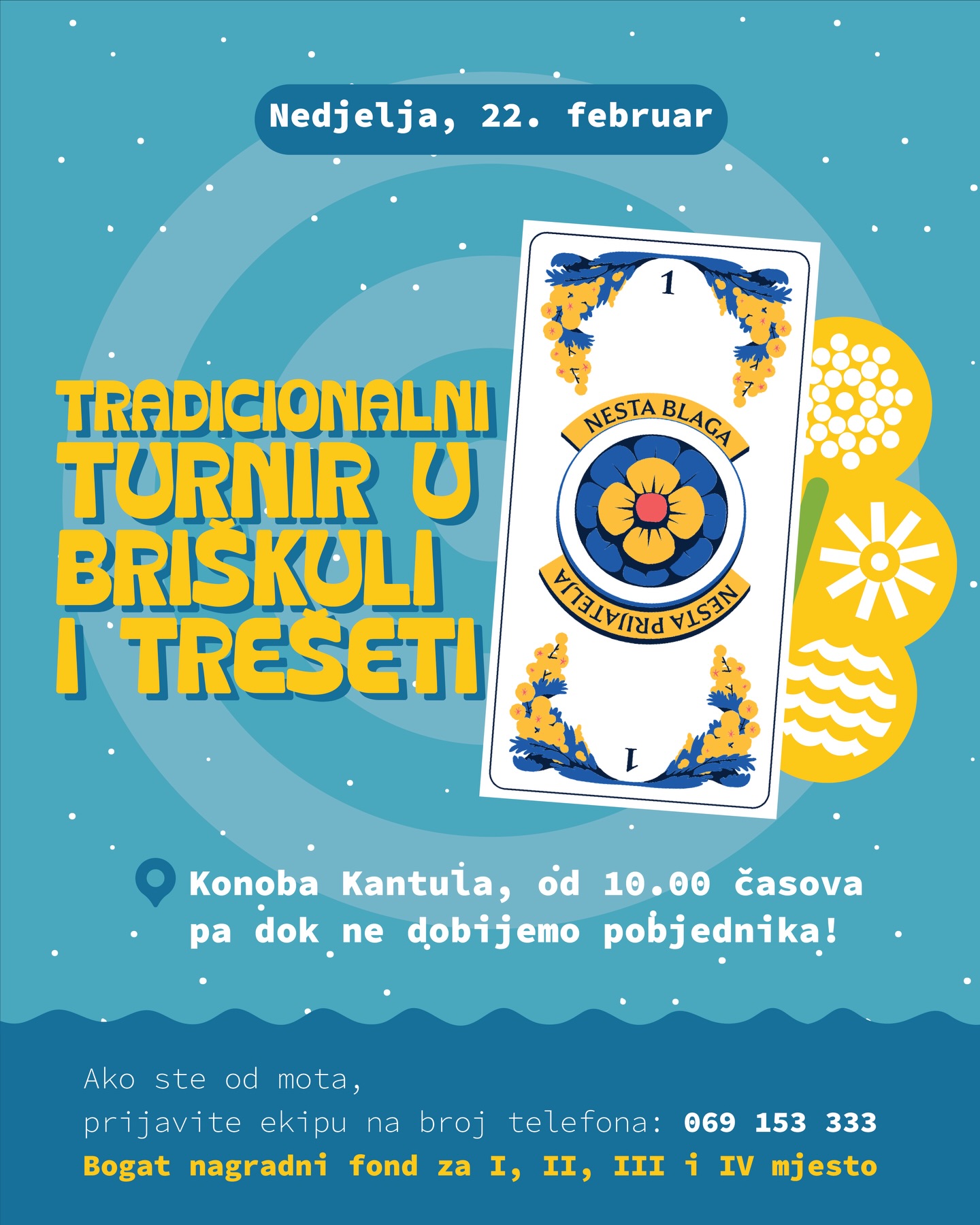 As part of the 57th Mimosa Festival, on Sunday, February 22, a tournament in brischula and tresheta will be held. The meeting place will be the Kantula tavern, and the competition will start at 10 am.