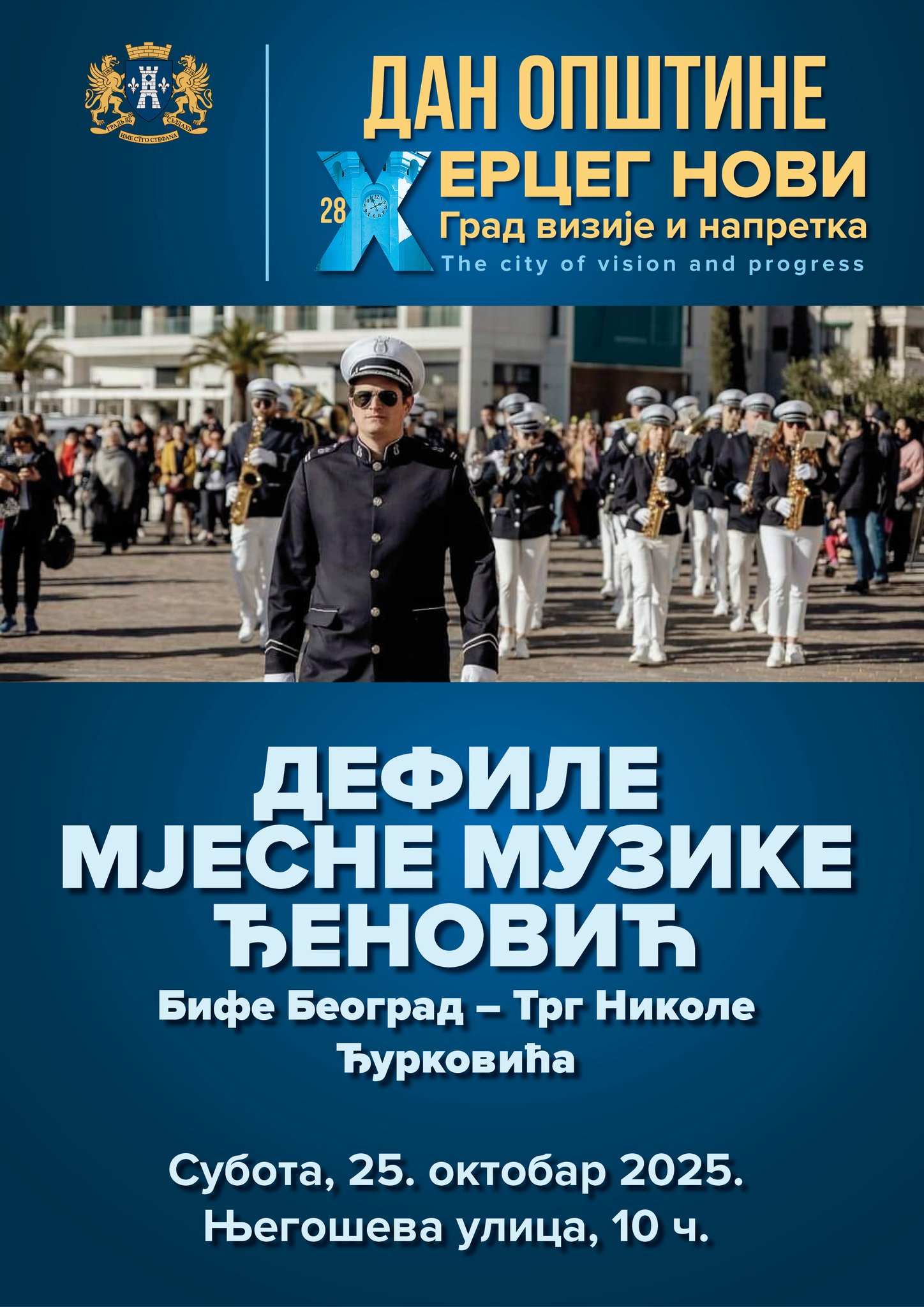 Povodom obilježavanja Dana oslobođenja Herceg Novog, Mjesna muzika Đenović prirediće svečani defile Njegoševom ulicom u subotu, 25. oktobra, na potezu od bifea Beograd do Trga Nikole Đurkovića. Početak je u 10 časova.