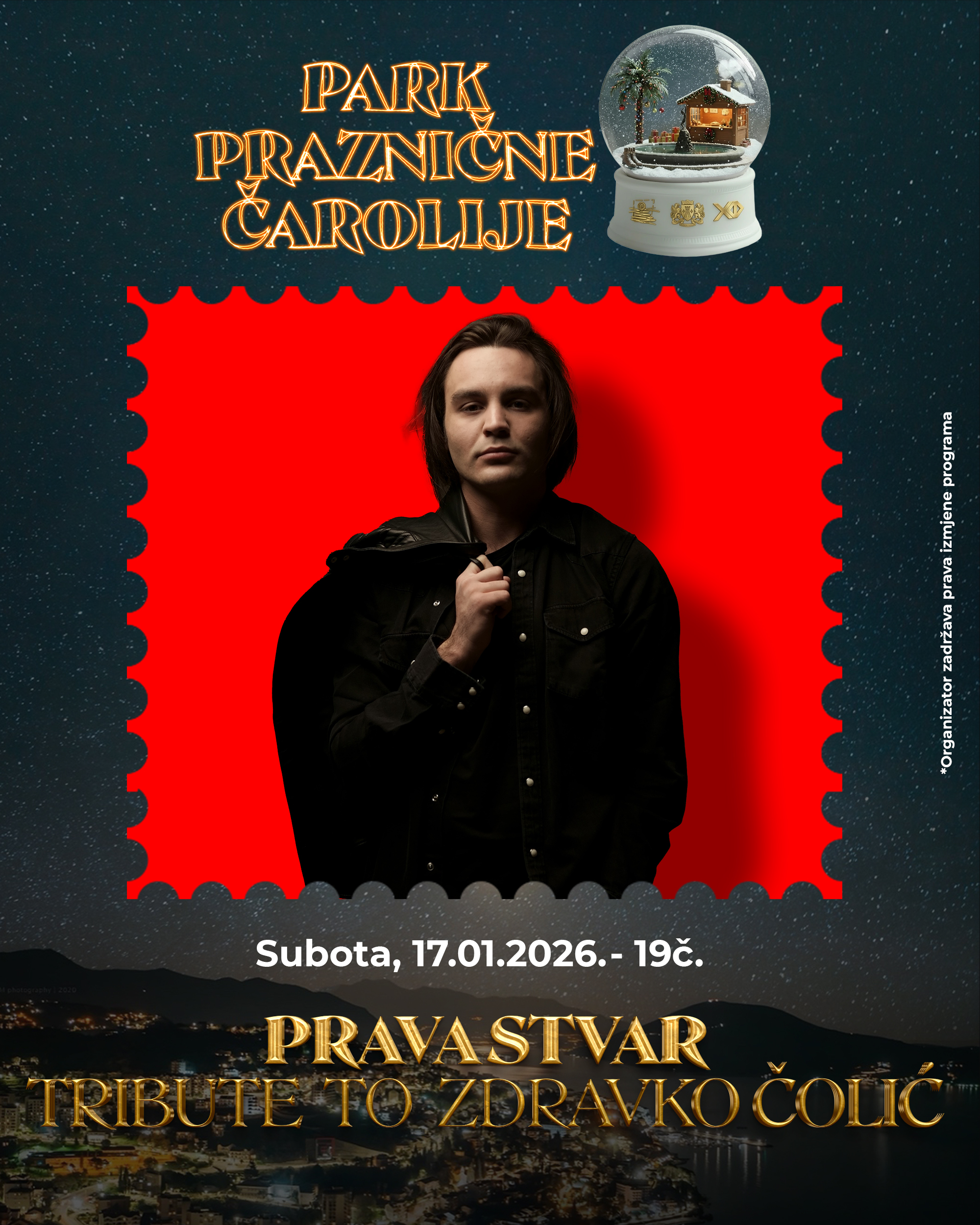 Zimska bajka u Parku Boka pod nazivom „Park praznične čarolije“, nastavlja da oduševljava kako građane, tako i goste Herceg Novog i u subotu 17. januara, u 19 časova, donosi fantastičan koncert benda „Prava stvar“ – Tribute to Zdravko Čolić.
