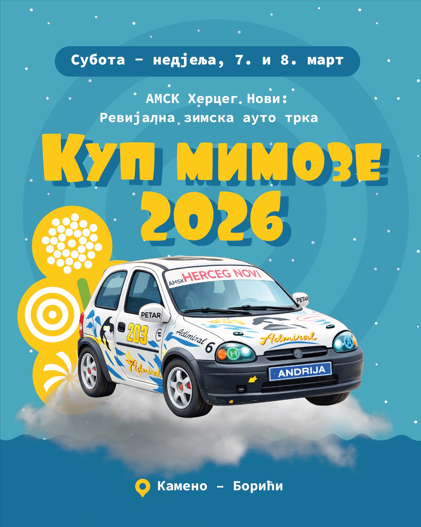 Revijalna zimska međunarodna brdska auto trka „Kup Mimoze 2026“ biće održana predstojećeg vikenda na stazi Kameno – Borići, u organizaciji Auto moto sportskog kluba Herceg Novi.