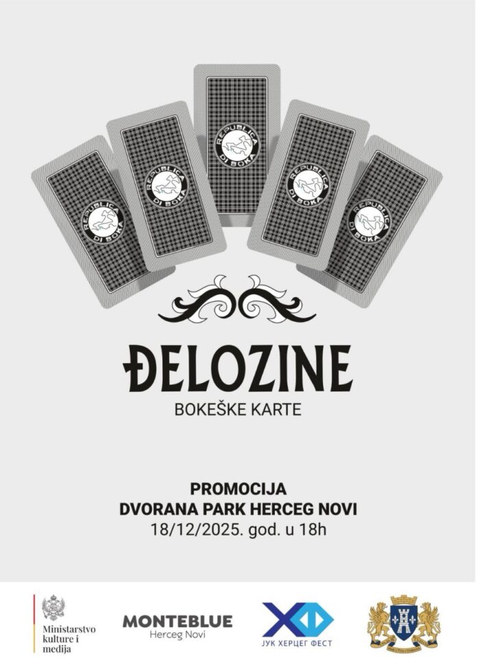 Podsjećamo da je prije godinu na tvrđavi Forte Mare promovisan sličan projekat „Bokeze“ na temu bokeških karata, Novljanke Jane Radan. Riječ je o unikatnom špilu karata za briškulu i trešetu koji je inspirisan simbolima, naslijeđem i vizuelnom tradicijom Boke kotorske, realizovanom uz podršku Western Balkans Youth Cultural Fund-a i Regional Youth Cooperation Office (RYCO), njemačkog federalnog Ministarstva vanjskih poslova, Opštine Herceg Novi i JUK Herceg fest.
