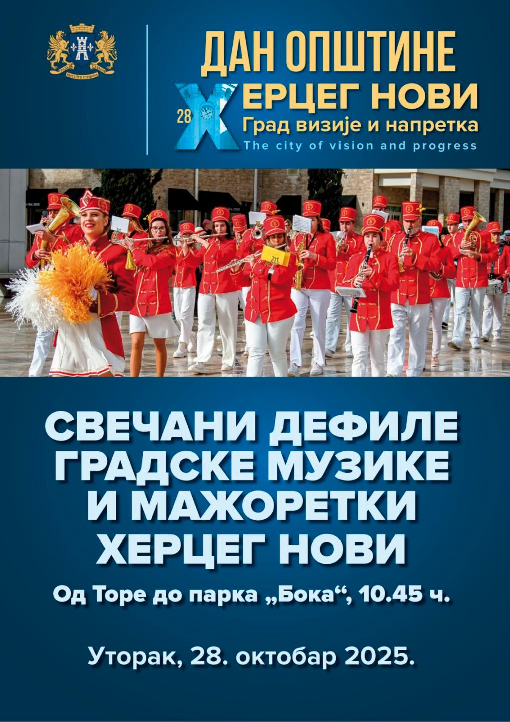 Gradska muzika Herceg Novi i mažoretke upriličiće svečani defile u utorak, 28. oktobra, od Tore…
